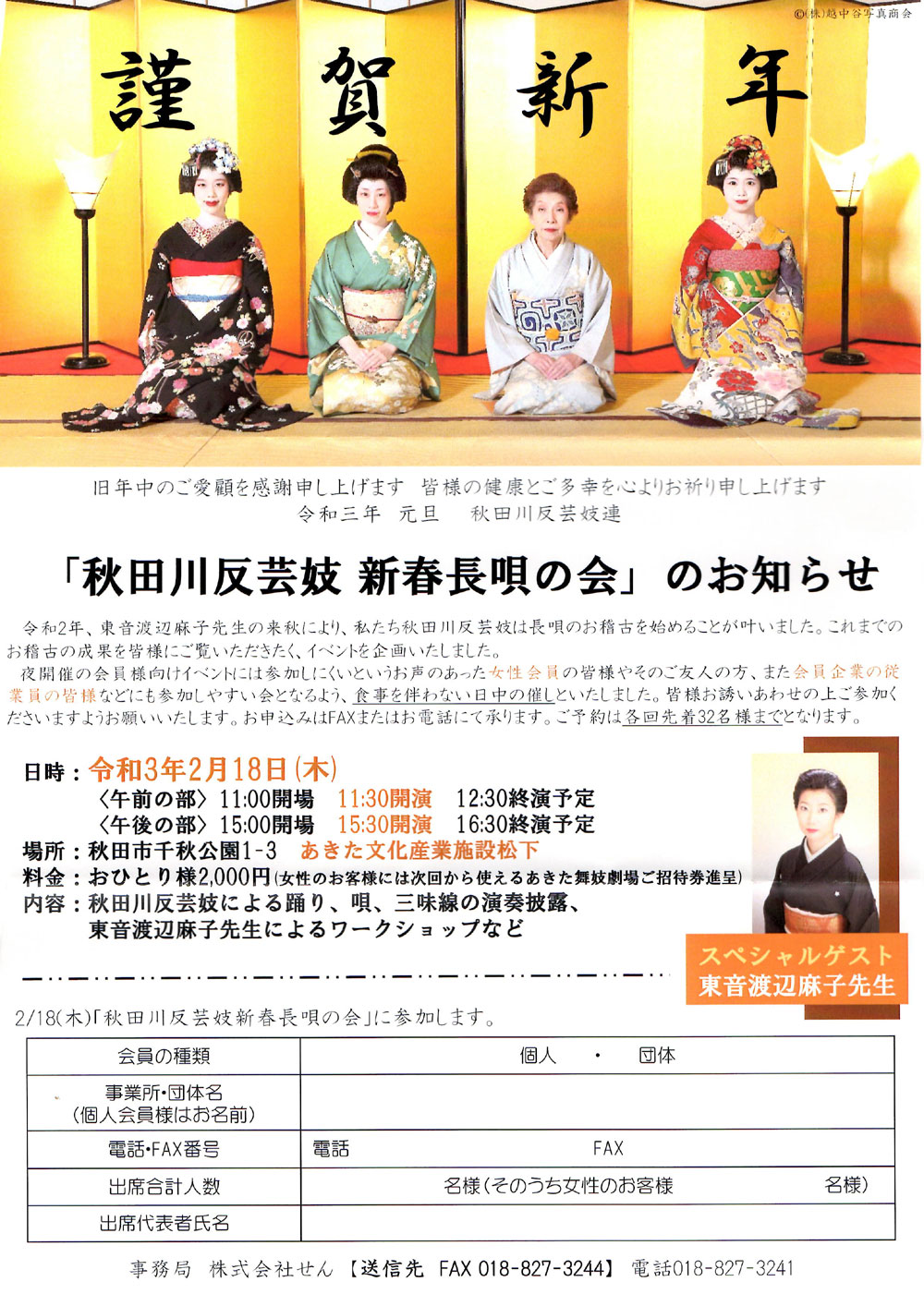 「秋田川反芸妓 新春長唄の会」のお知らせ