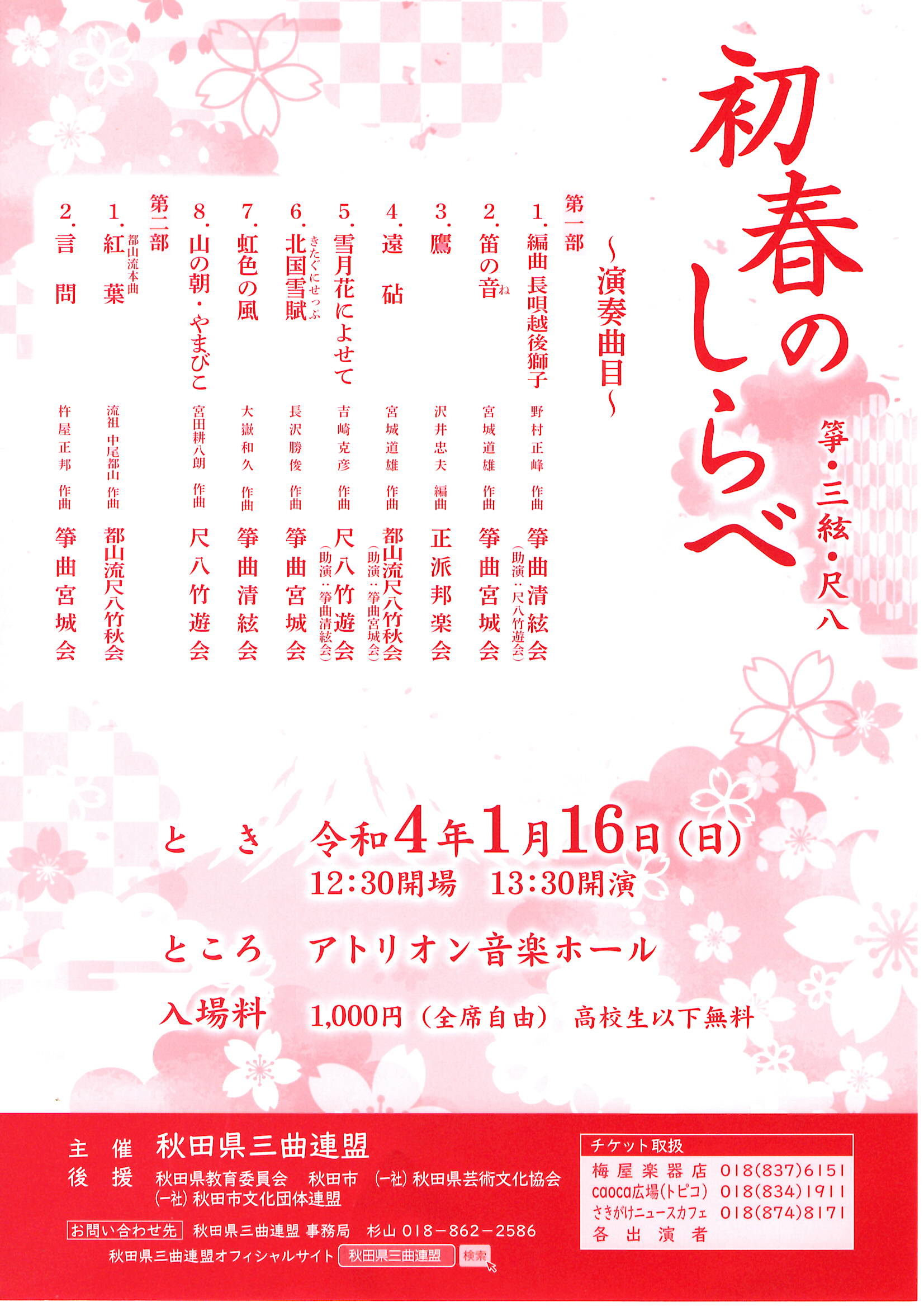 お問い合わせ:秋田県三曲連盟 事務局 ☎ 018-862-2586