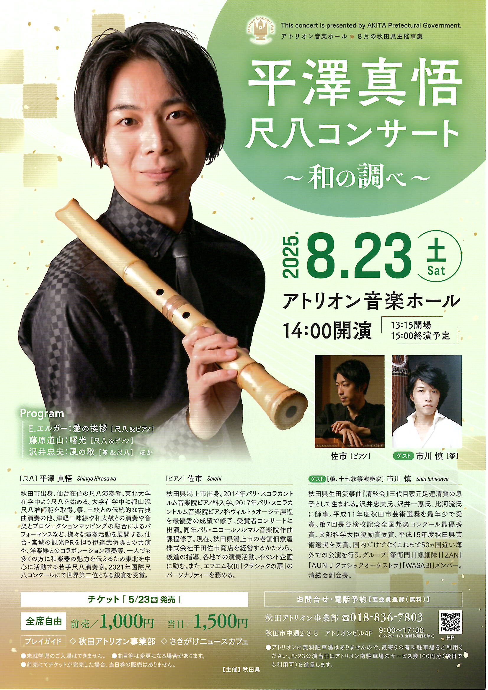 出演:平澤真悟(尺八)・佐市(ピアノ)・【ゲスト】市川慎(箏)