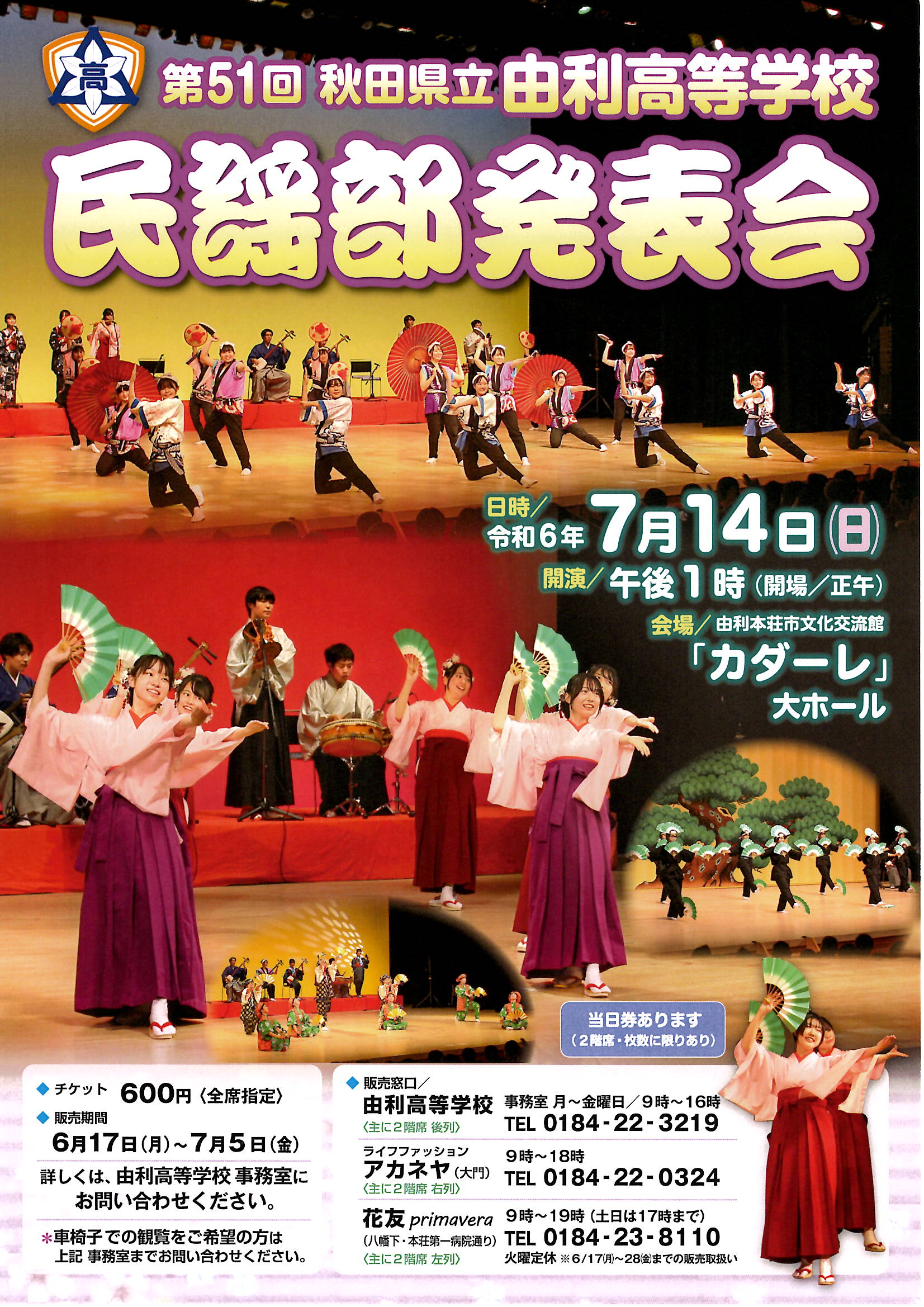 販売窓口:由利高等学校 事務室(月~金/9時~16時/TEL0184-22-3219)